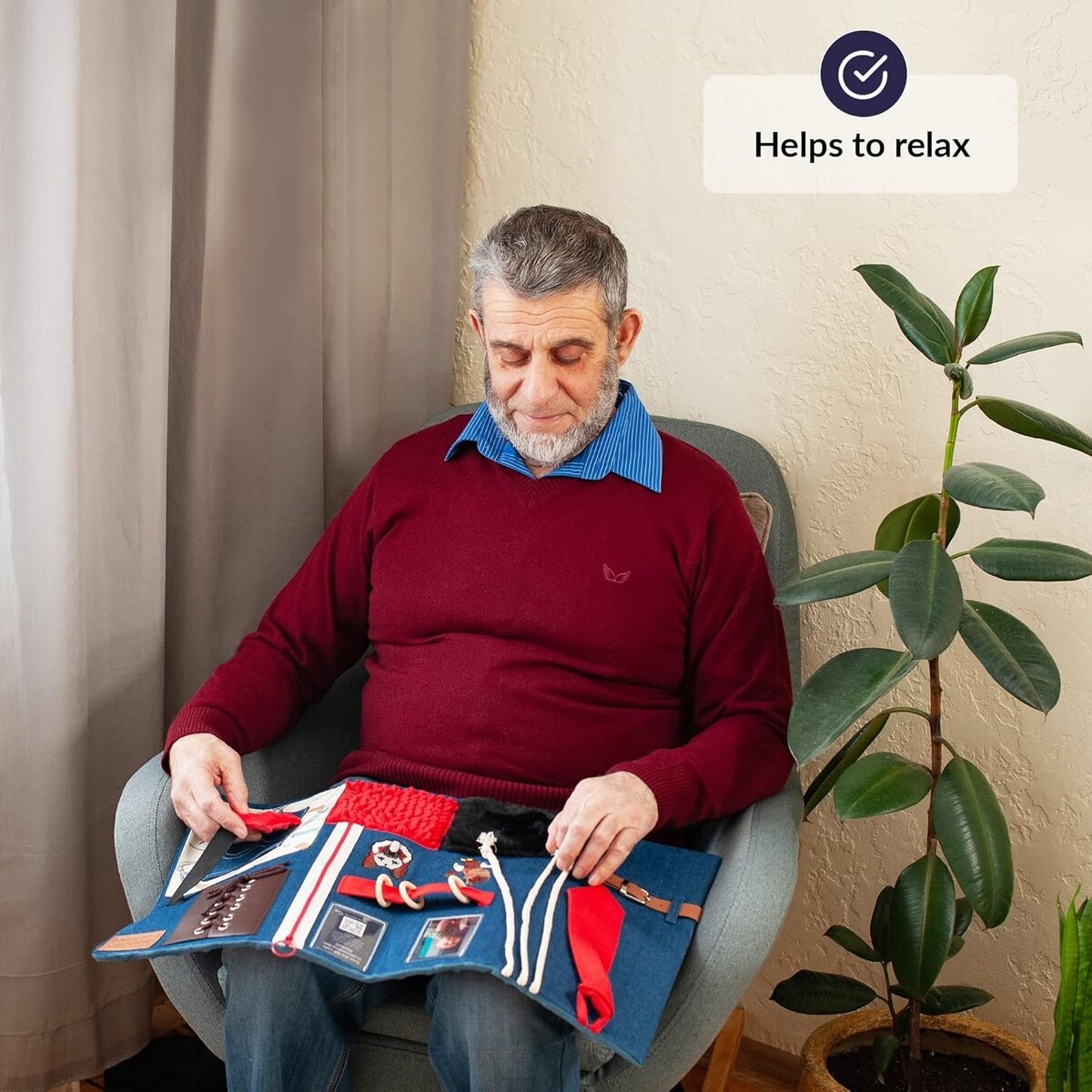 Designed to help seniors with Alzheimer?s or dementia relax by keeping restless hands occupied.