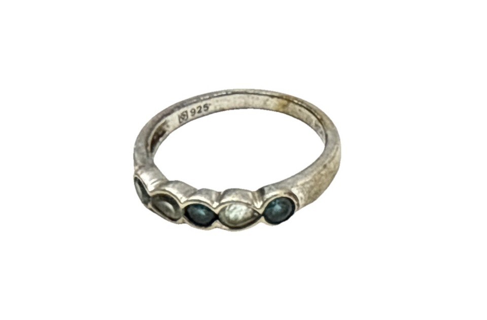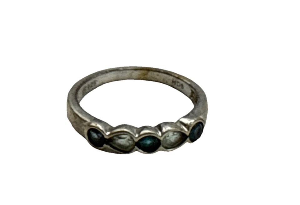 HDS Signed Sterling Silver Blue Clear Crystal Set 5 Stone Band Ring Sz 7