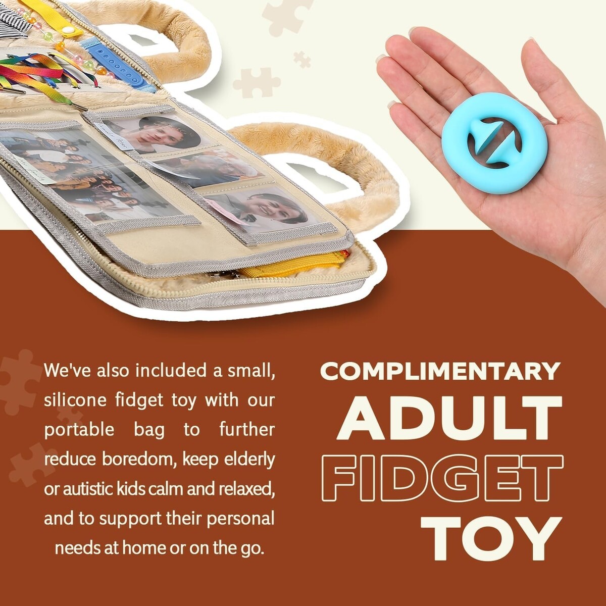 Cute Dementia Fidget Blanket with Emergency Card & Photo Album - 11"x11" Size