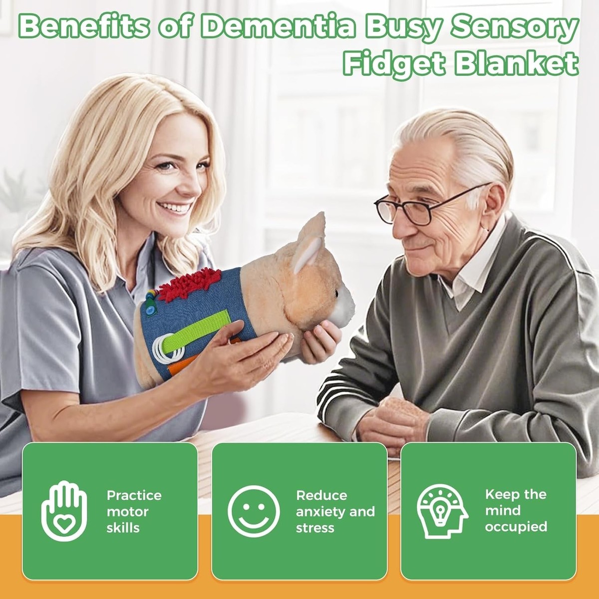 Sensory Blanket for Seniors: Engages restless hands with a variety of fun sensory activities that keep your loved one entertained and occupied.