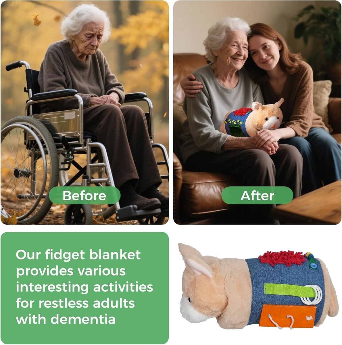 Don't let your cherished loved ones feel forgotten. With the Cozy 2-in-1 Fidget Muff Cat and Blanket, you not only provide them with comfort but also promote mental wellness and engagement. Its innovative design ensures it adapts to their needs, making it a treasured companion during moments of quiet reflection or social interaction.