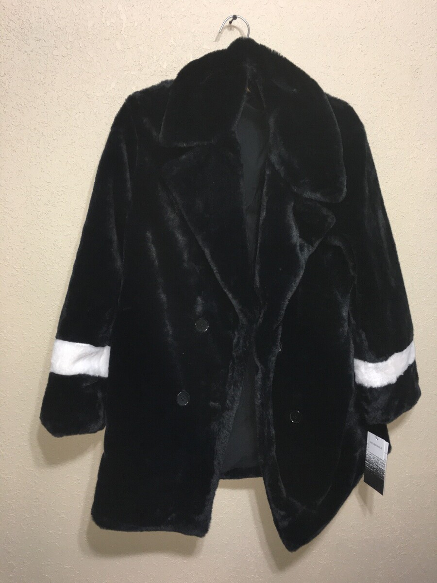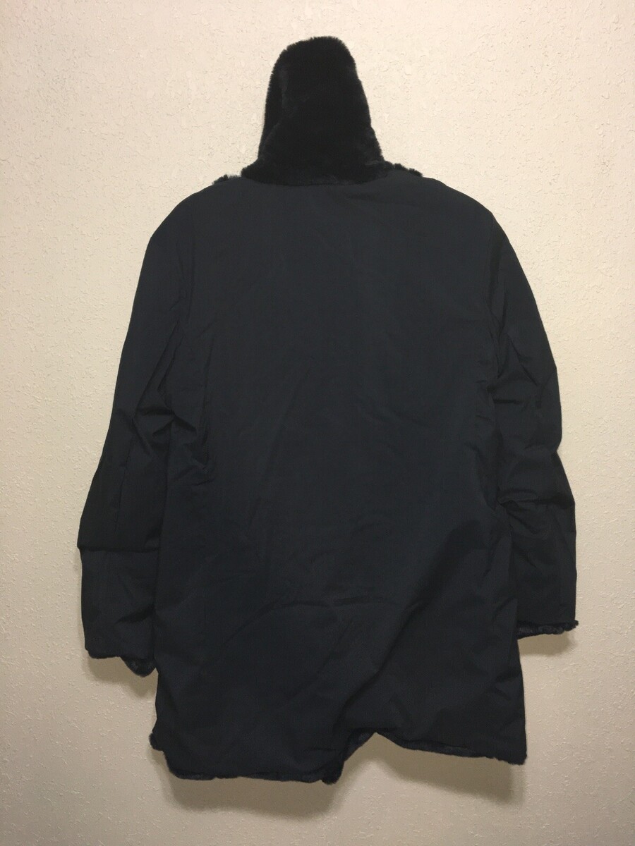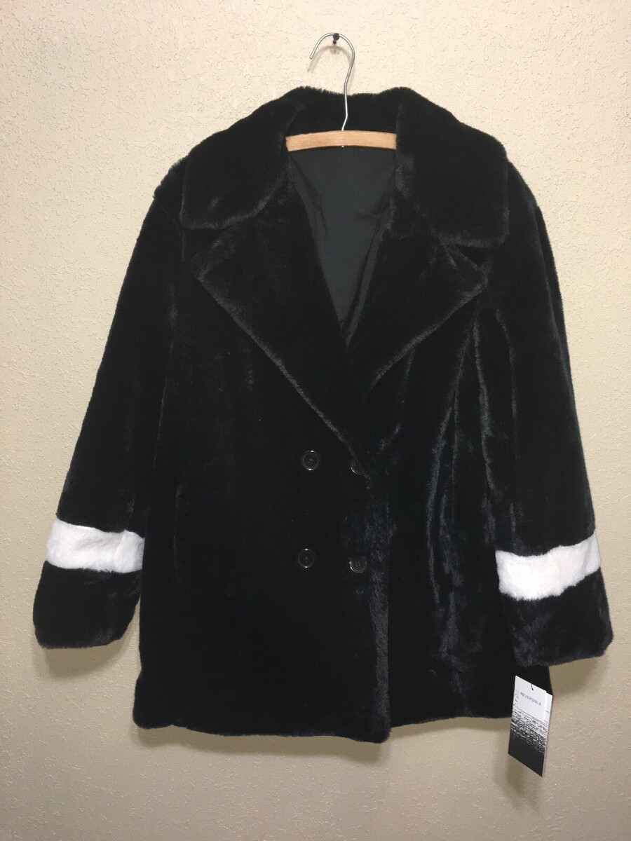 KENSIE Faux Fur Reversible Coat Collar Black Soft Plush SZ L NEW