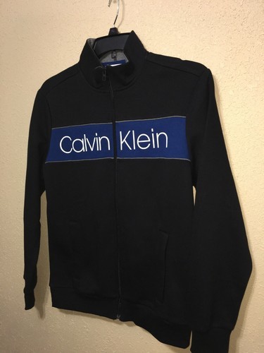 Calvin Klein Mens Sweatshirt Black Blue Logo Zip Up SZ L NEW
