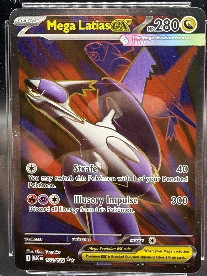 The product is a CGC Pristine 10 Mega Latias ex 163/132 card from the Pokémon TCG set Me01: Mega Evolution. This Ultra Rare card features the character Latias with 280 HP and a stunning Holo finish. Manufactured by The Pokémon Company in 2025, this English-language card is illustrated by 5ban Graphics and belongs to the Basic stage of the game. With its EX speciality and being part of the Mega Evolution set, this collectible card is highly sought after by Pokémon TCG enthusiasts and collectors.