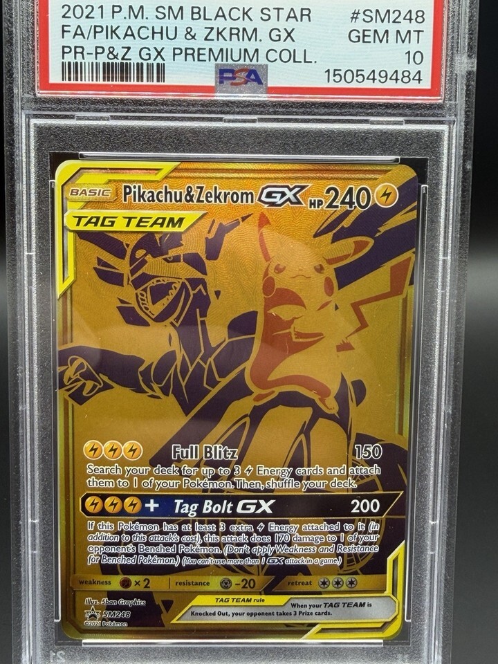 2021 POKEMON SM BLACK STAR PROMO #SM248 FULL ART/PIKACHU & ZEKROM GX PSA 10