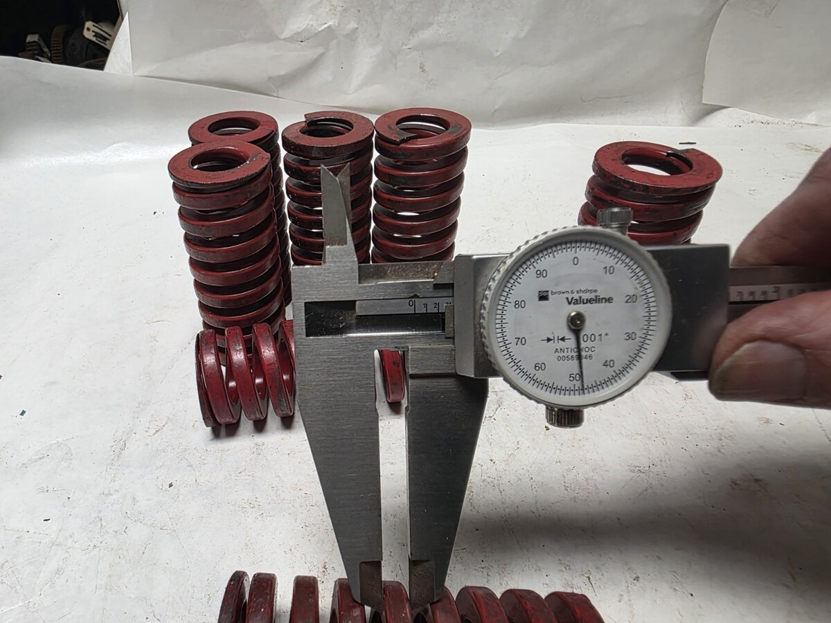 10 pcs. of Red Heavy-Duty Die/Compression Spring 1-1/2" Hole x 3/4" Rod x 3-7/16" Long [some measure a little under 3-7-16 and some are around 3-1/2" long] Approx. measurements are 1.470" od. x .800 id. x 3-7/16" to 3-1/2" Long .250" x .325" rectangular wire.