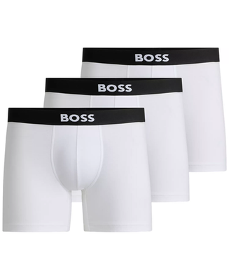 Hugo Boss Men's 3-Pk Boss One Cotton Stretch Logo Boxer Briefs White-XL 40-42W