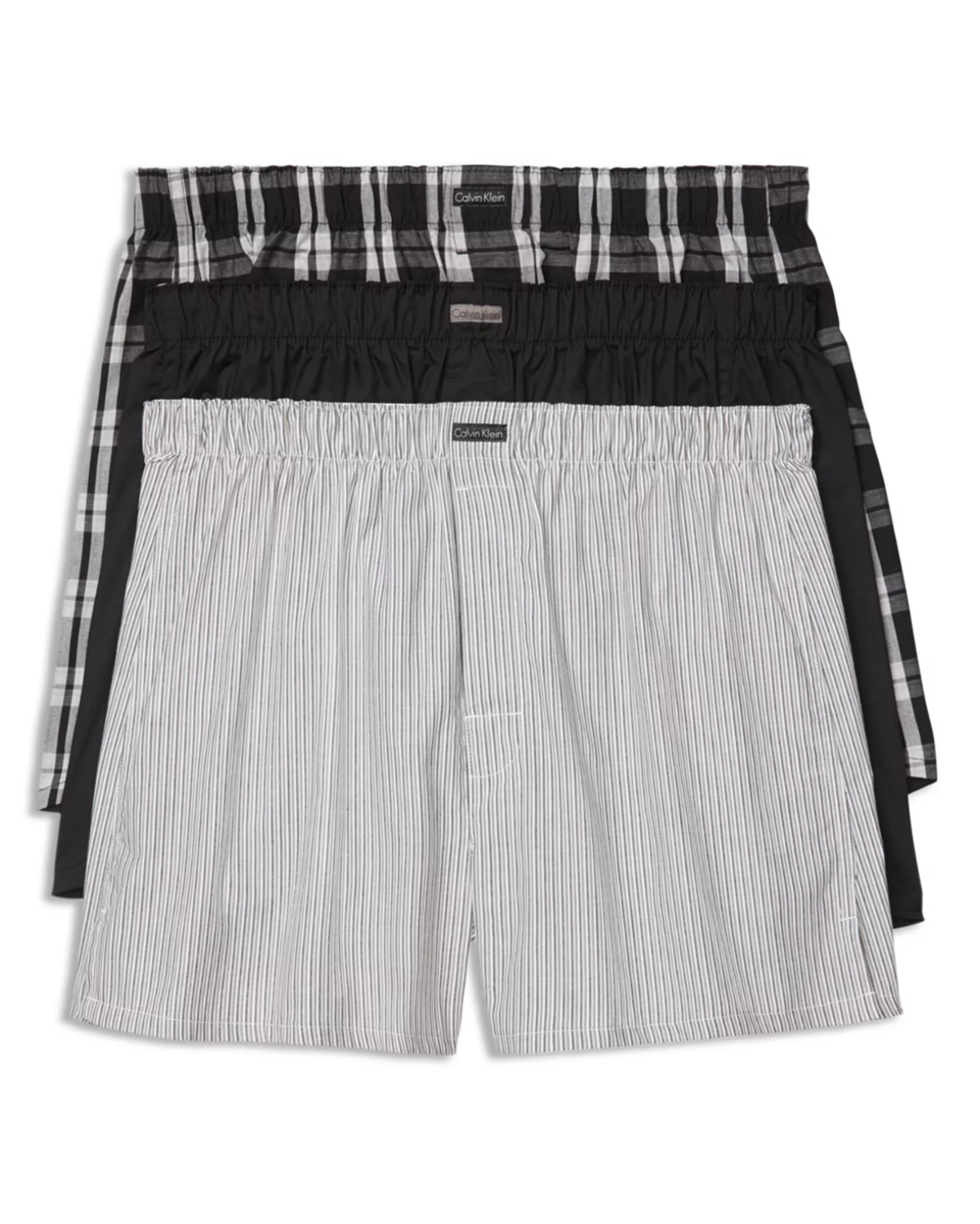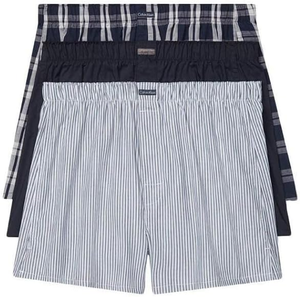 Calvin Klein Men's 3-Pack Woven Boxers Cotton Blend Asst-Medium 32-34W