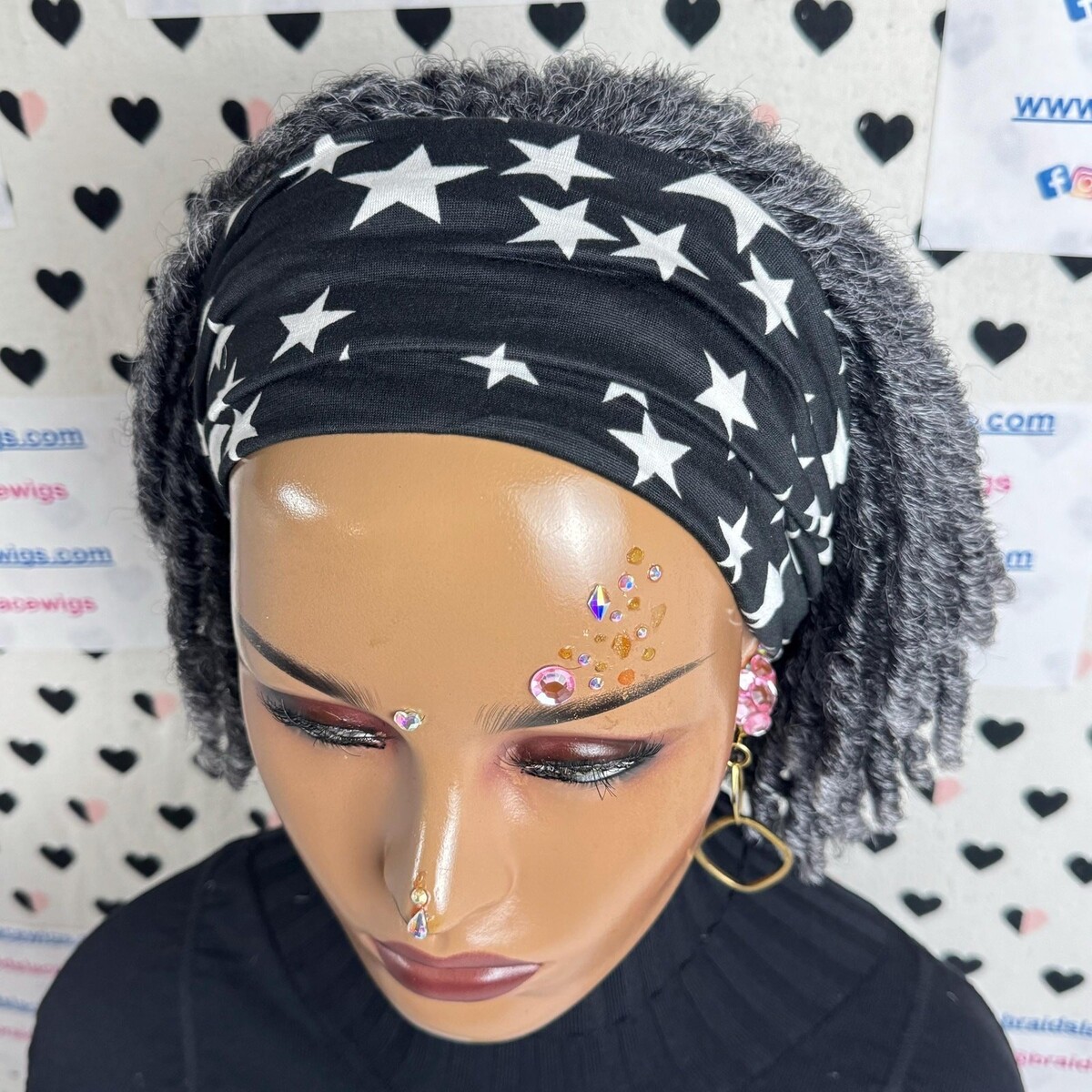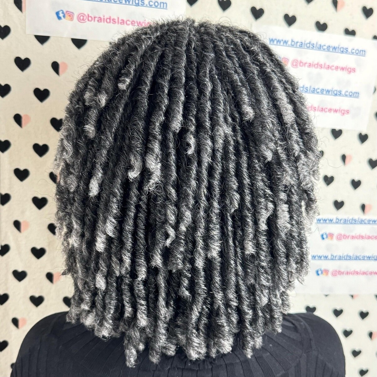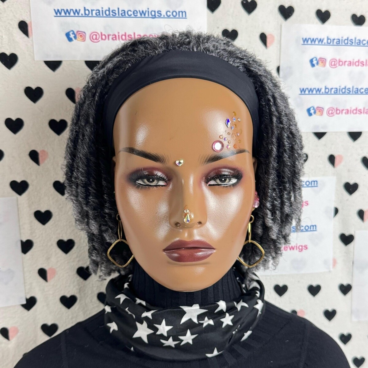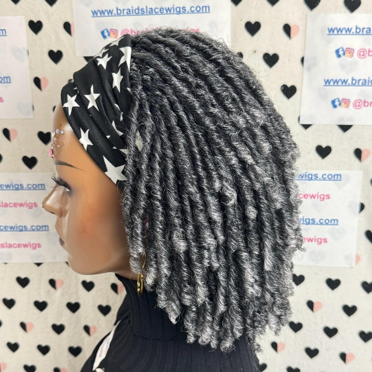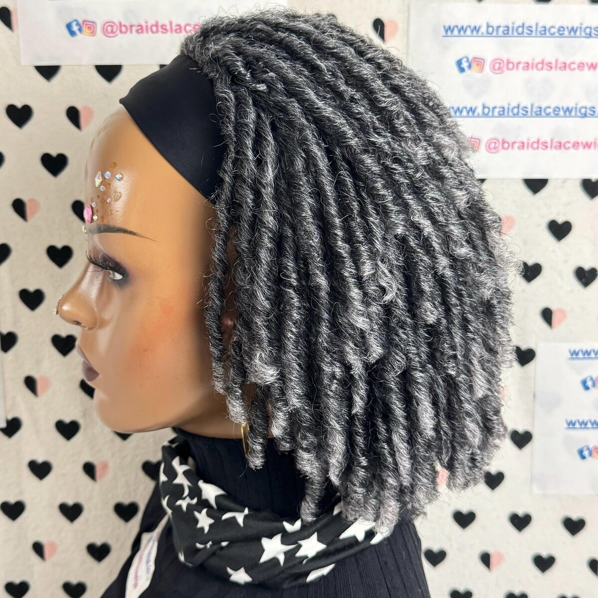 Short Faux Locs Dreadlock Synthetic Afro Twist Headband Braided Wig Gray Black