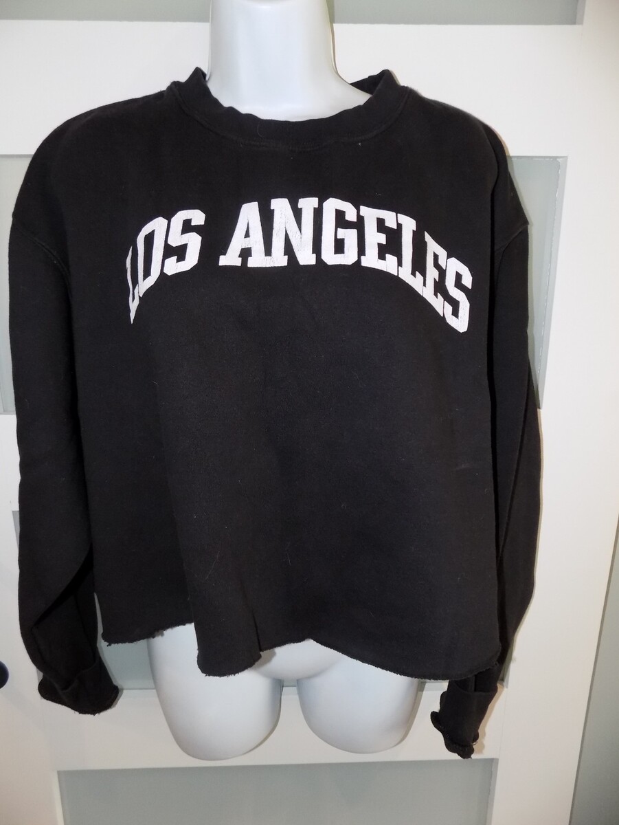 Social Culture Black Los Angeles LS Crew Neck Crop Sweatshirt Size XL Women's