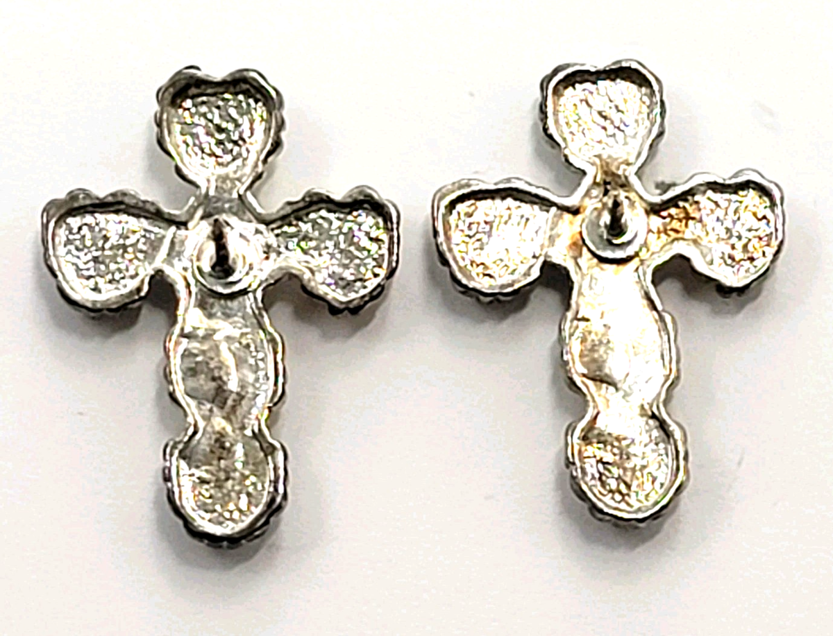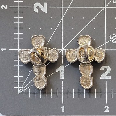 Lot of 2 Pastel Colored Heart Cross Silver Tone Pins