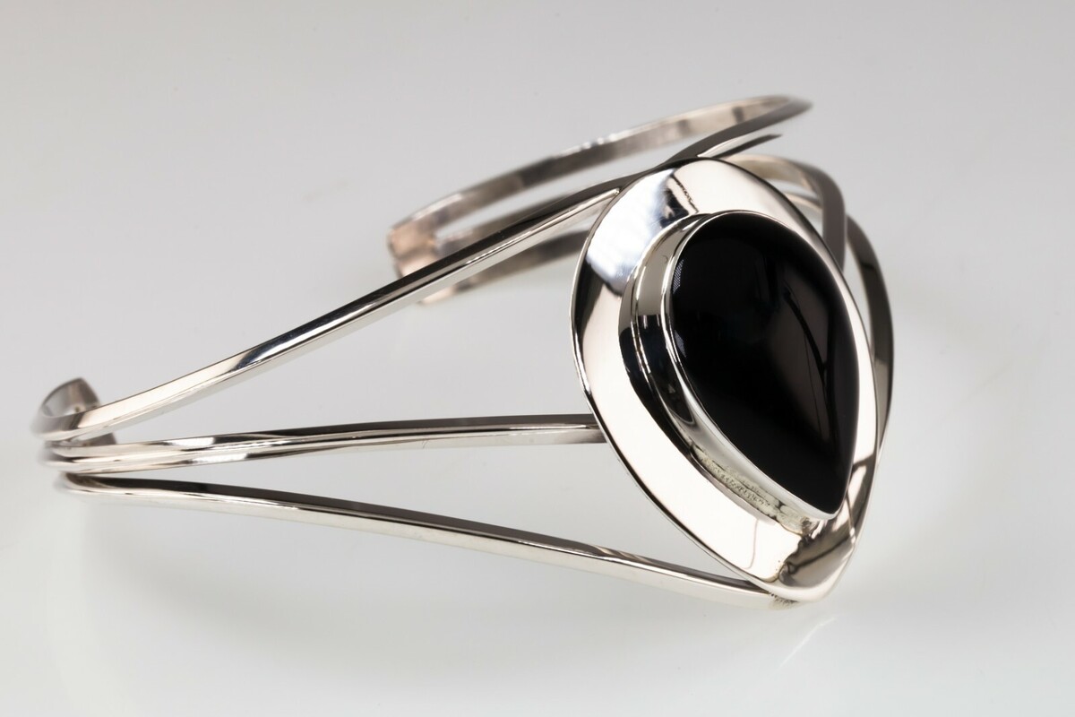 Navajo Sterling Silver Onyx Cuff Bracelet
