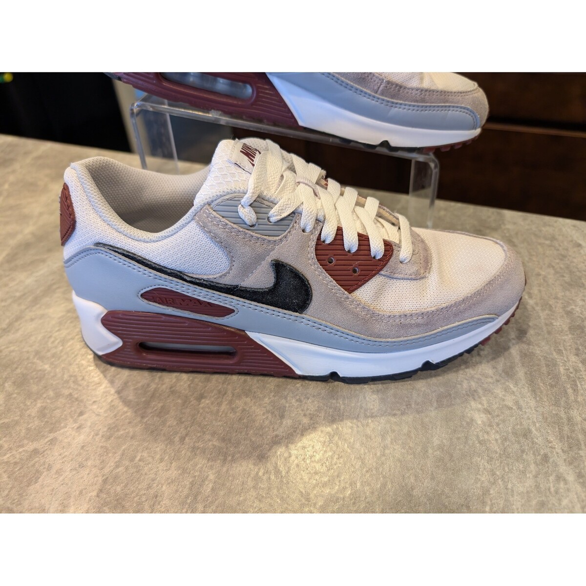 CLEAN Nike Air Max 90 Mens US 10 White Burgundy Grey Sneakers FN6958-101