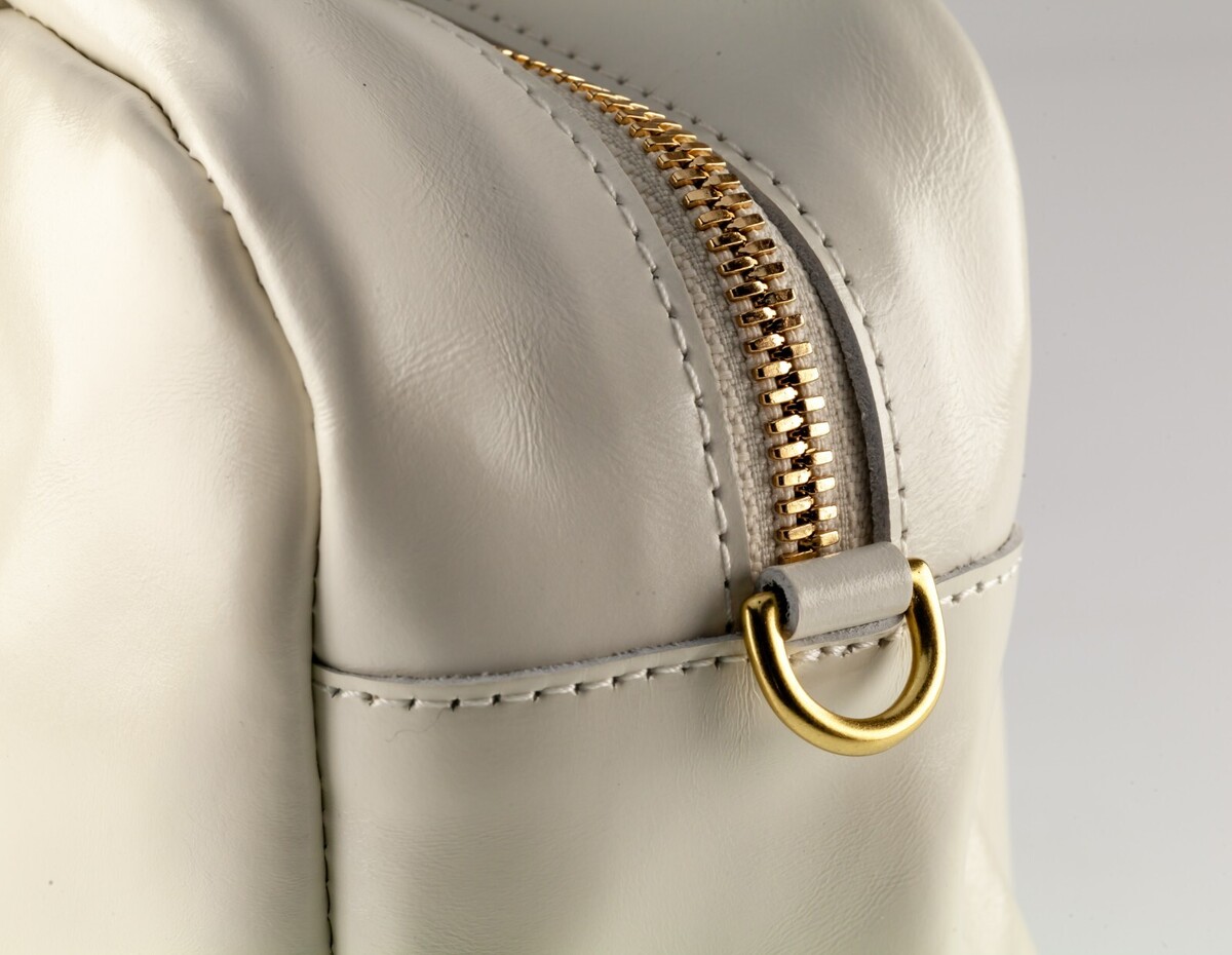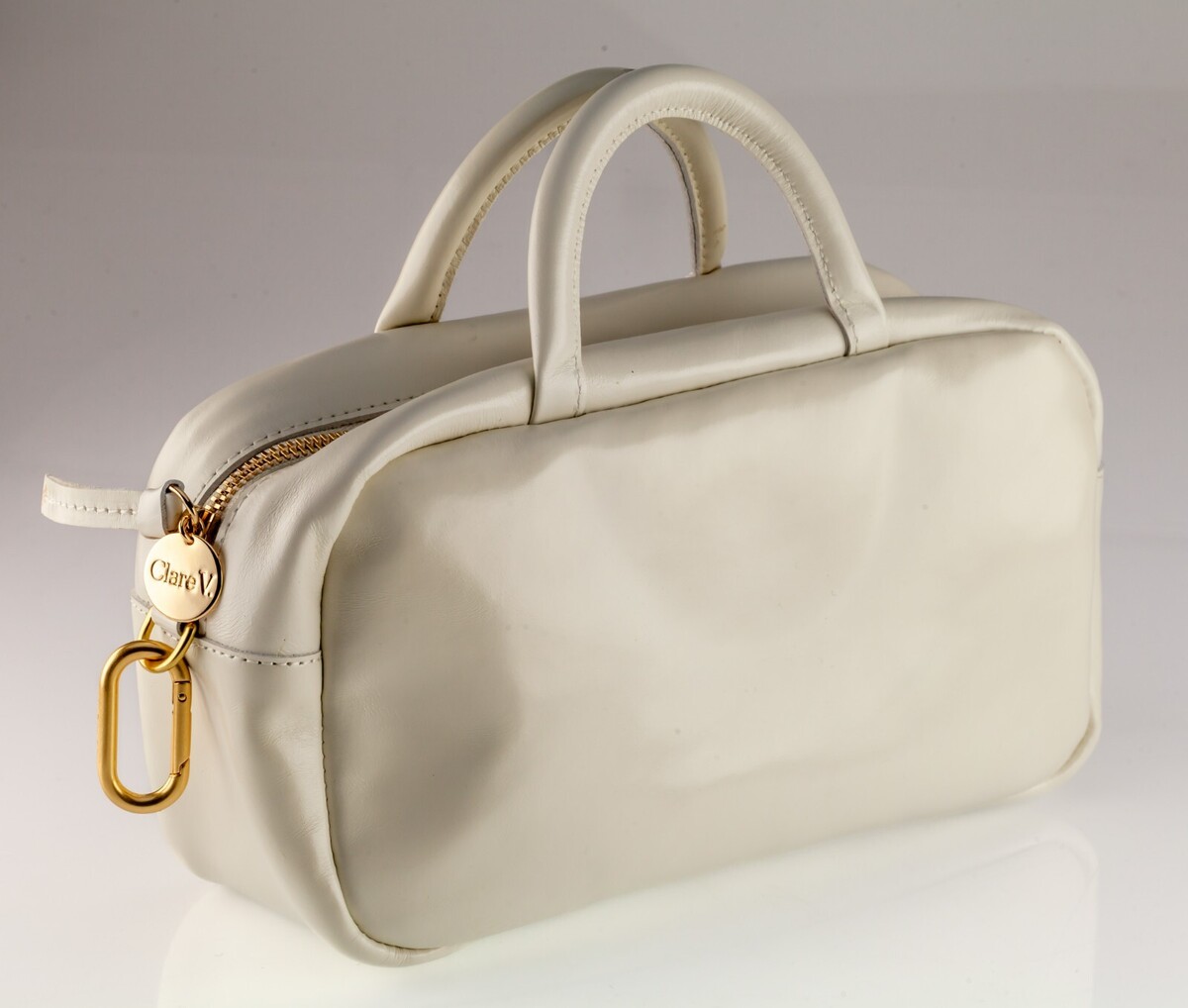 Clare V. Petit Claudine Handbag Brie Glace Leather Women's White w/ Double-Handle