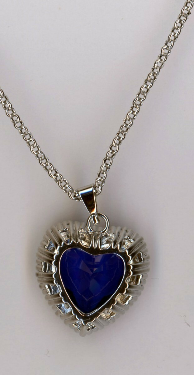 Ce collier bleu est de couleur argent et en forme de c?ur.