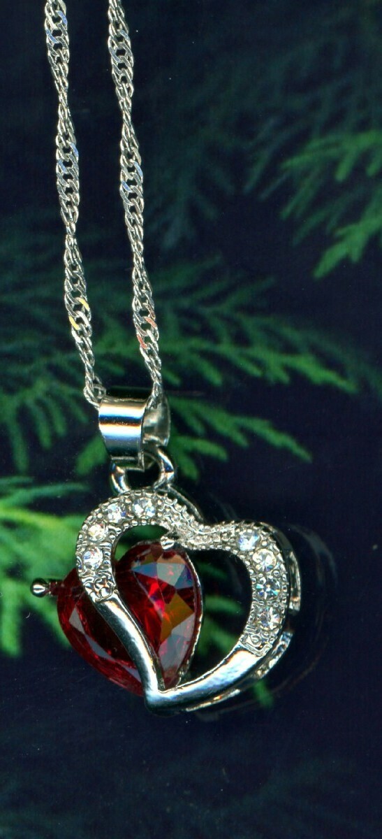 Elegante Leaf Infinity Love Color colgante Collar de piedra de nacimiento Regalos de joyería de cristal Collar de tono plateado para mujeres, piedras preciosas de color rojo. Esta pieza de collar tiene plata en color y en forma de corazon, con un rojo piedra preciosa coloreada adjunta. Todo hecho con una cadena de plata de 18 pulgadas. Una hermosa creacion.