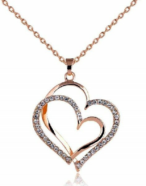 Esta pieza de collar es de color oro y doble corazon en forma de corazon.