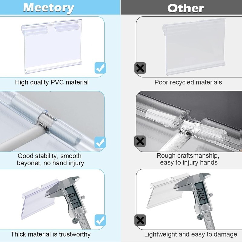 ?EFFICIENT ORGANIZATION?- Meetory 50 pack basket label holders are designed to fit wire shelves, providing the perfect solution for organizing your wire shelf units. Easily display important information in a clear and simple way.(INCLUDES 50PCS 2.95" x 1.38" LABEL PAPER)