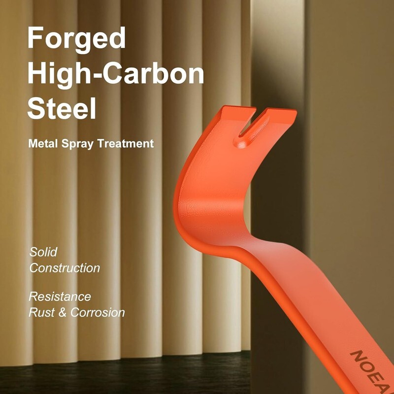 ?High Quality Material?The pry bars are made of high carbon steel forging, the surface is orange spray treatment,sturdy, rust and corrosion prevention.