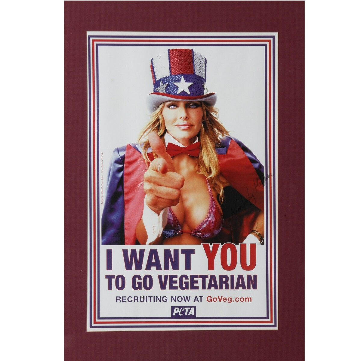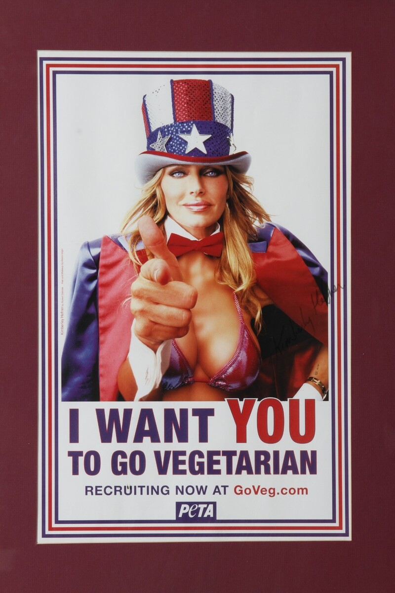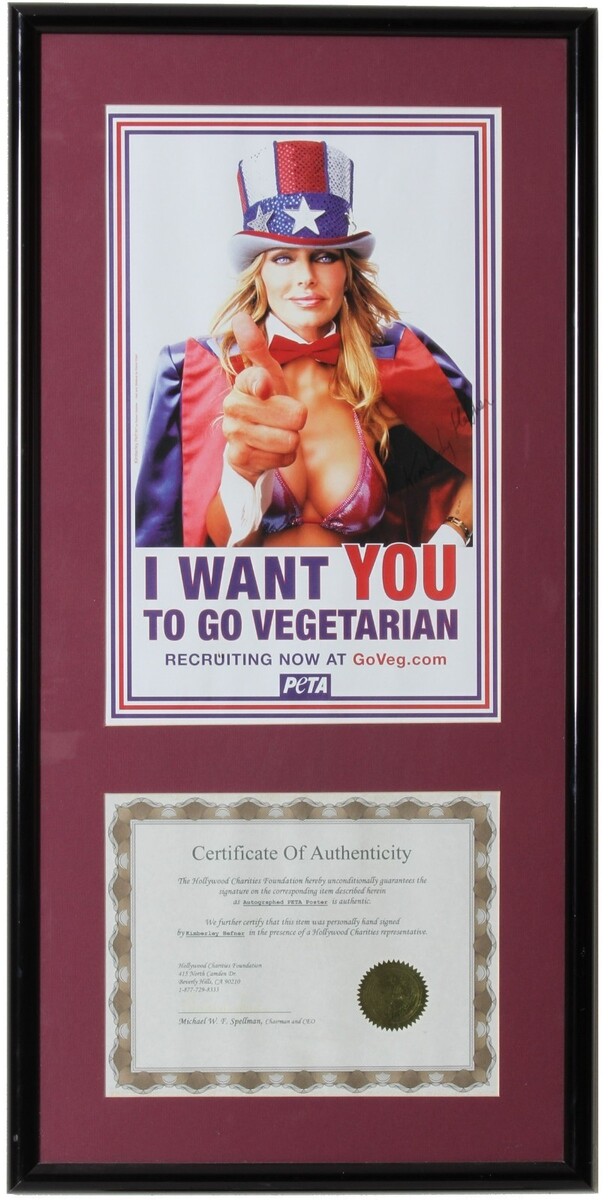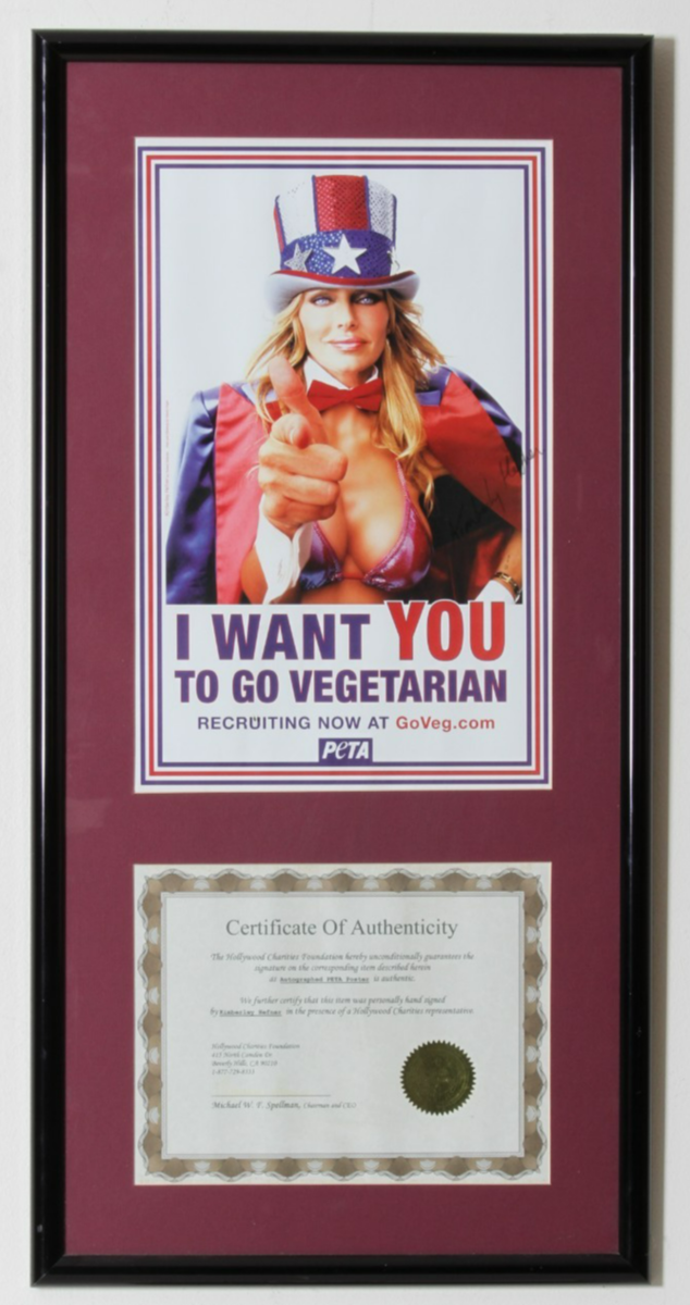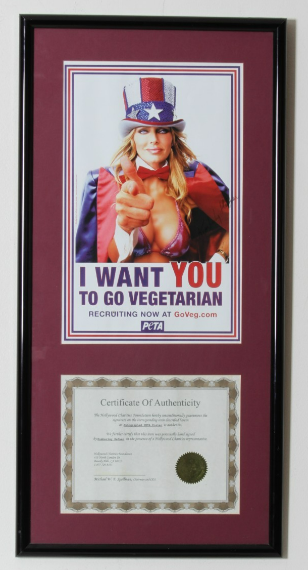 Poster enmarcado de PETA firmado a mano "Go Vegetarian" Kimberley Hefner con COA