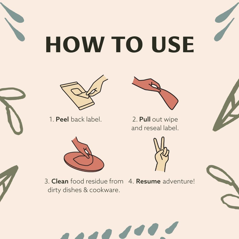 Dish Wipes 100% Biodegradable Pre-Moistened Food-Safe Camp Kitchen Wipes | a Soap-And-Water Alternative