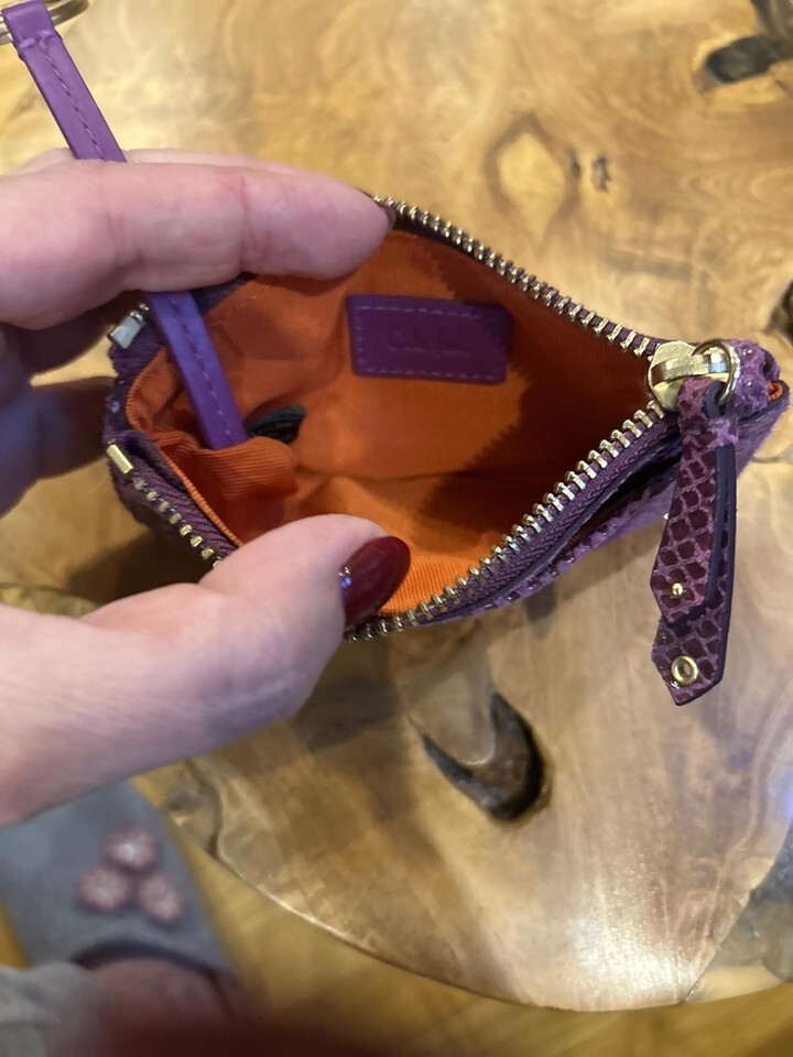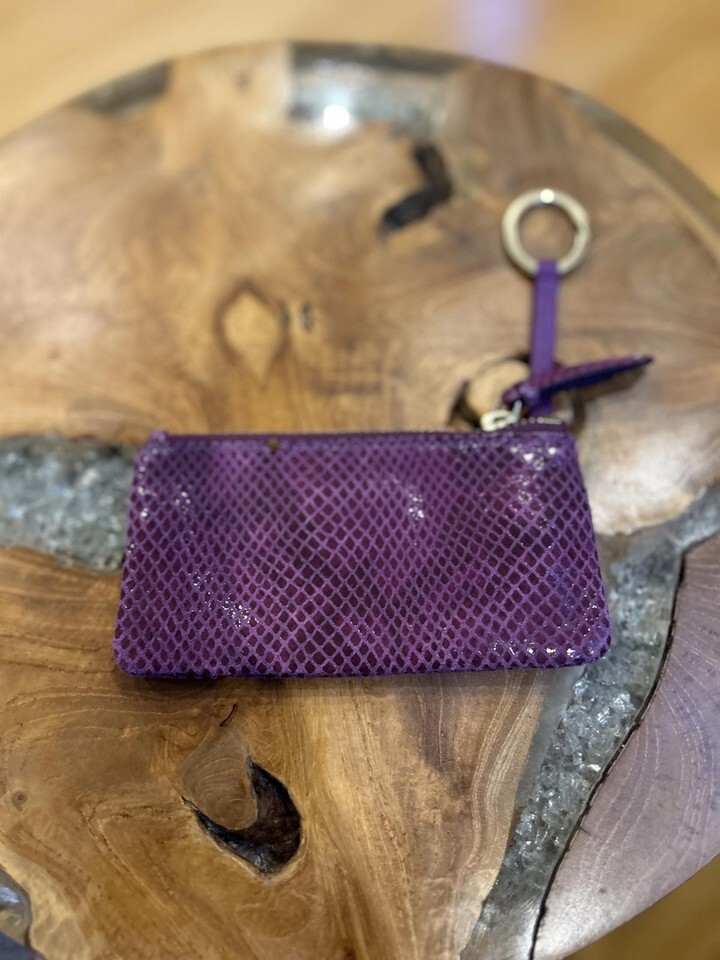 Cole Haan Purple Textured Leather Card Wallet with Key Ring