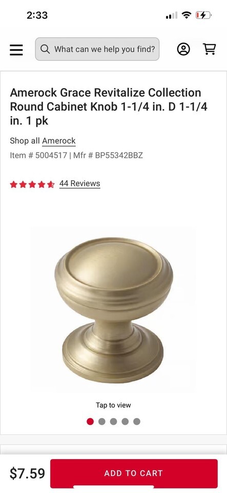 Amerock Grace Revitalize Collection Round Cabinet Knob 1-1/4