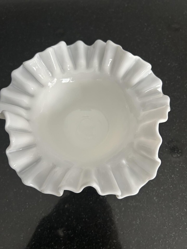 Vintage USA Fenton milk glass hobnail bowl white rufflededge