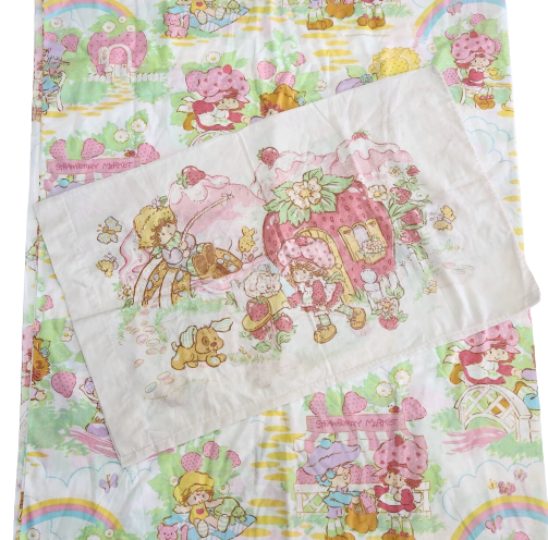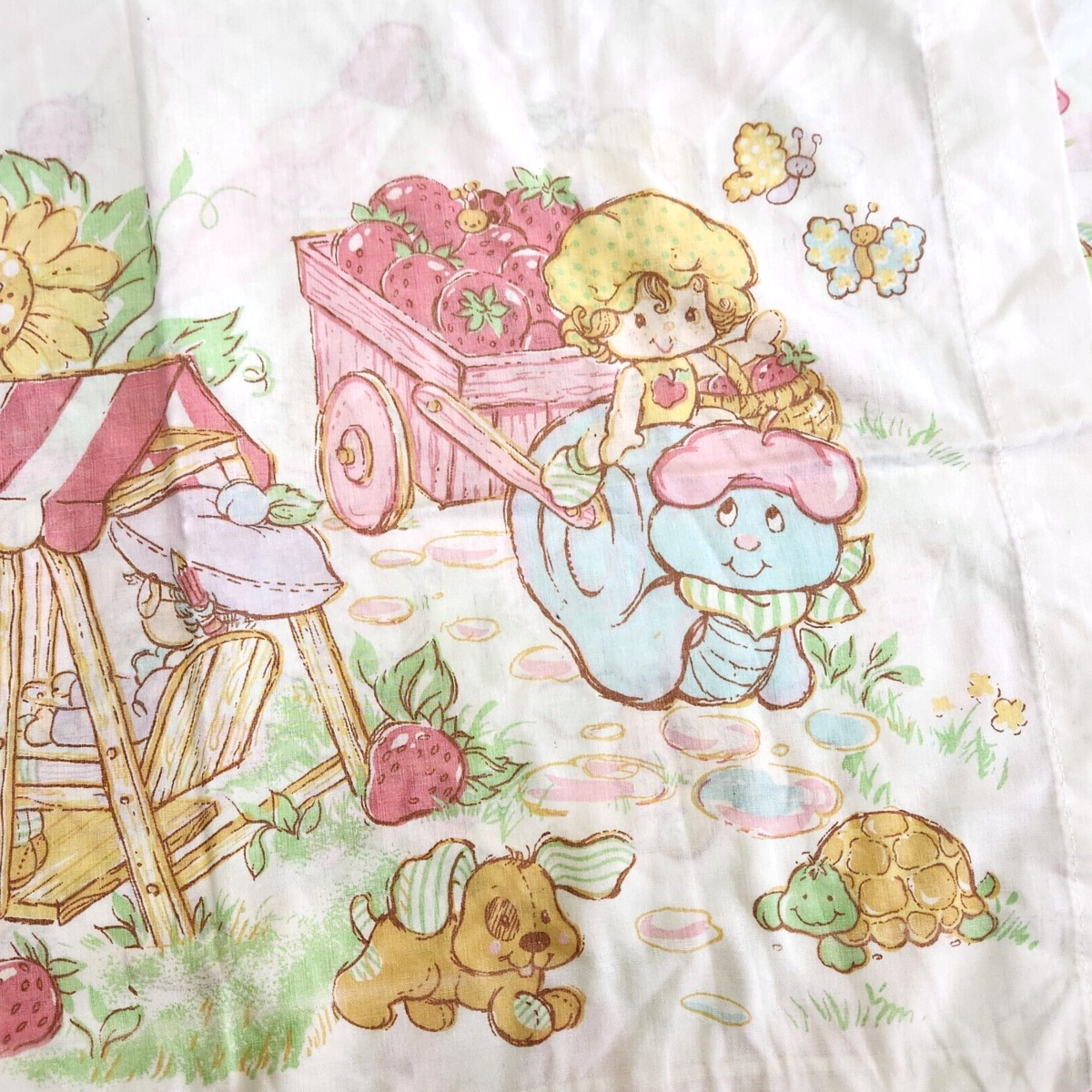 VINTAGE 1980's STRAWBERRY SHORTCAKE TWIN SIZED FLAT SHEET + 1 PILLOWCASE