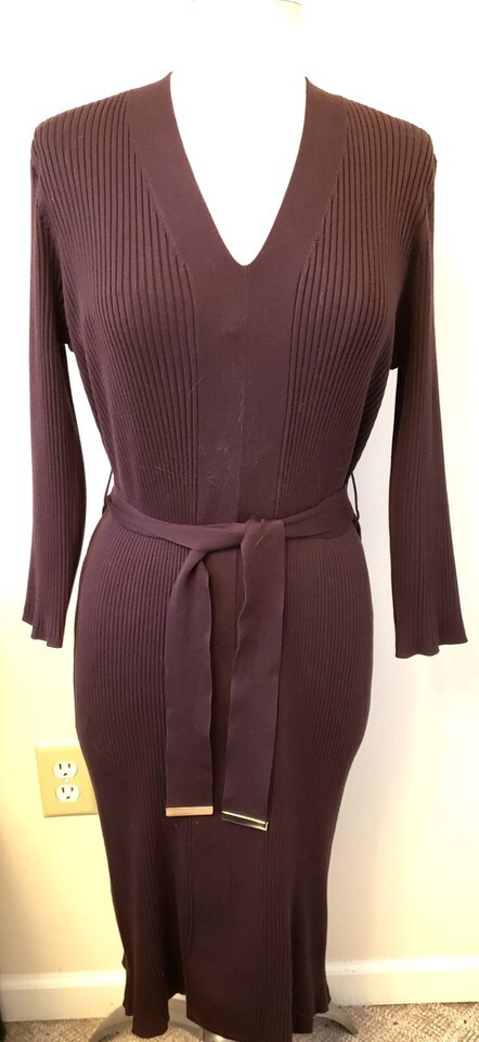 Calvin Klein Belted Midi Dress Size-L Brown and 31 similar items