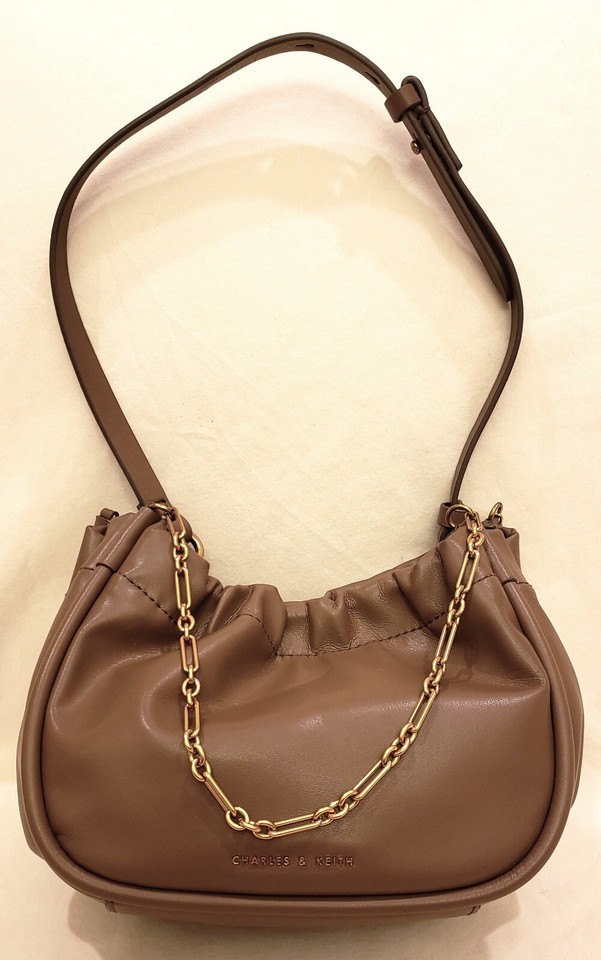 Charles & Keith Handbag/Shoulder Bag Brown/Tan Double Chain Handle