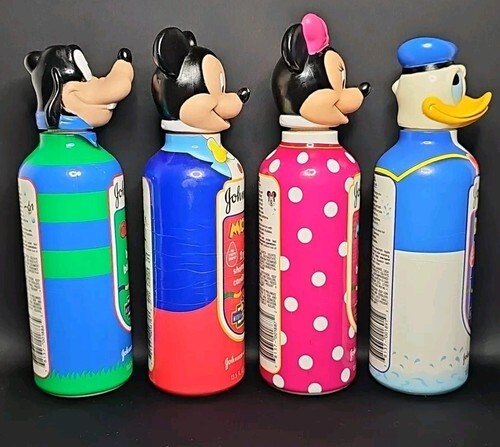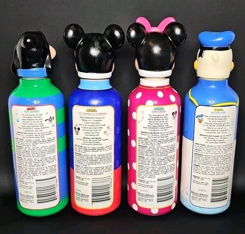 UP FOR SALE: Disney Johnson's Soaky Bubble Bath EMPTY Bottles Mickey Minnie Donald Goofy Vintage 1990s