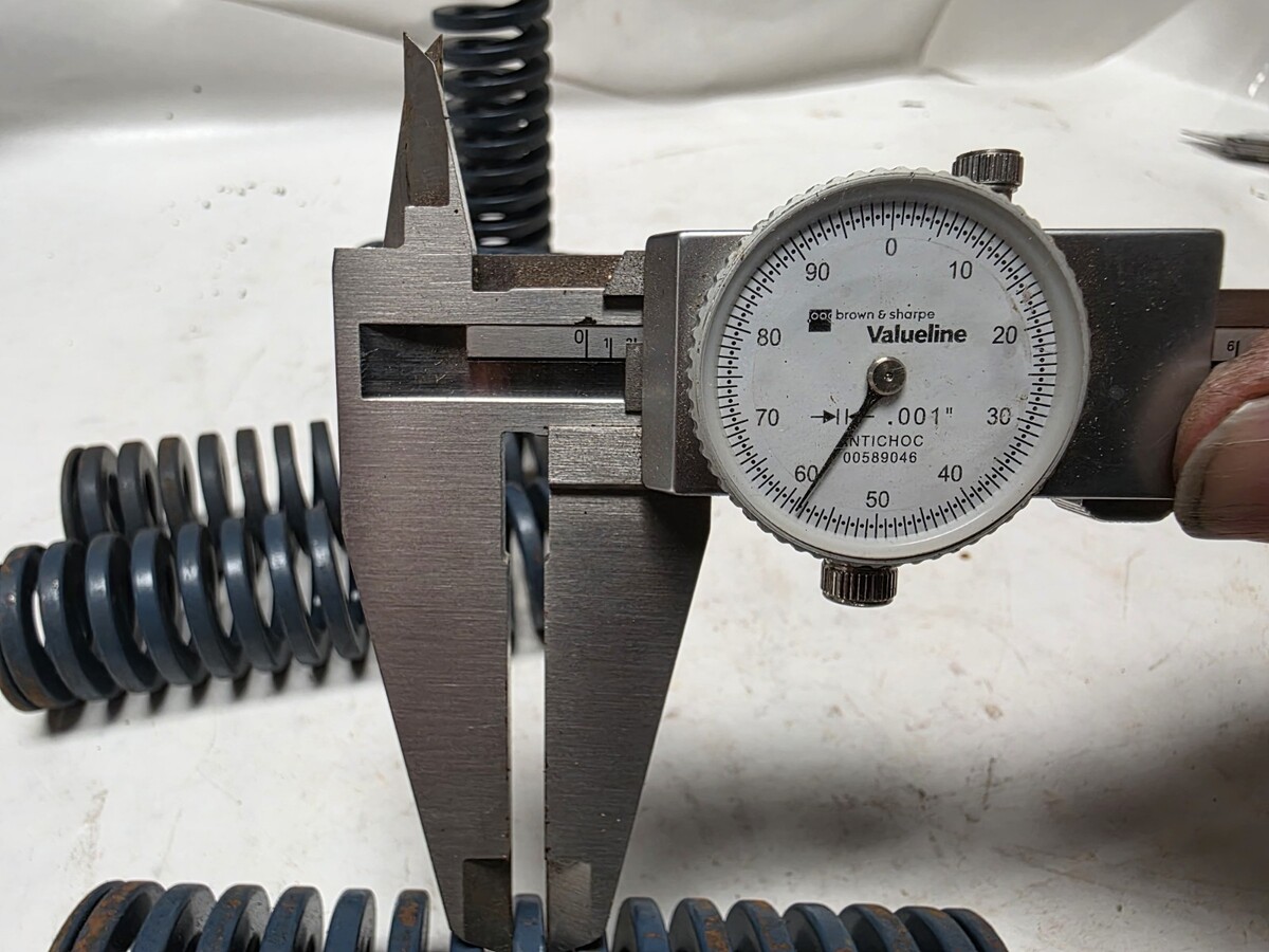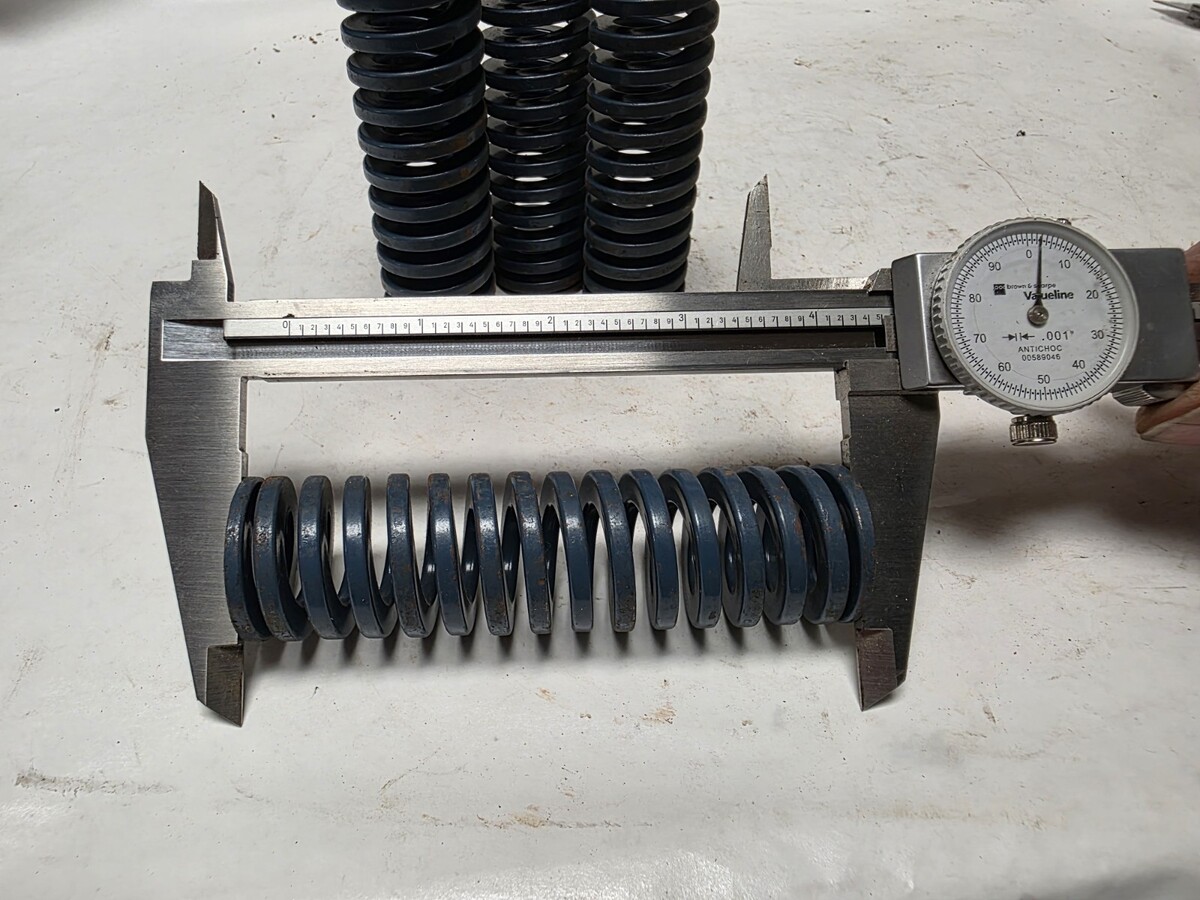 5 pcs. of Blue Heavy-Duty Die/Compression Spring 1-1/4" Hole x 5/8" Rod x 4-1/2" Long [some measure a little under 4-1/2"] Approx. measurements are 1.200" od. x .640 id. x 4-1/2" Long .155" x .275" rectangular wire.