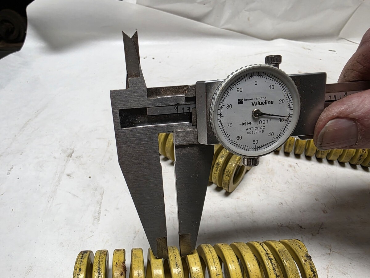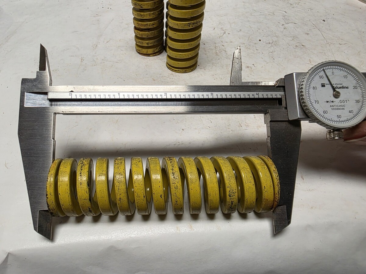 4 pcs. of Yellow Heavy-Duty Die/Compression Spring 1-1/2" Hole x 3/4" Rod x 4-1/2" Long [some measure a little under 4-1/2"] Approx. measurements are 1.200" od. x .640 id. x 4-1/2" Long .225" x .285" rectangular wire.