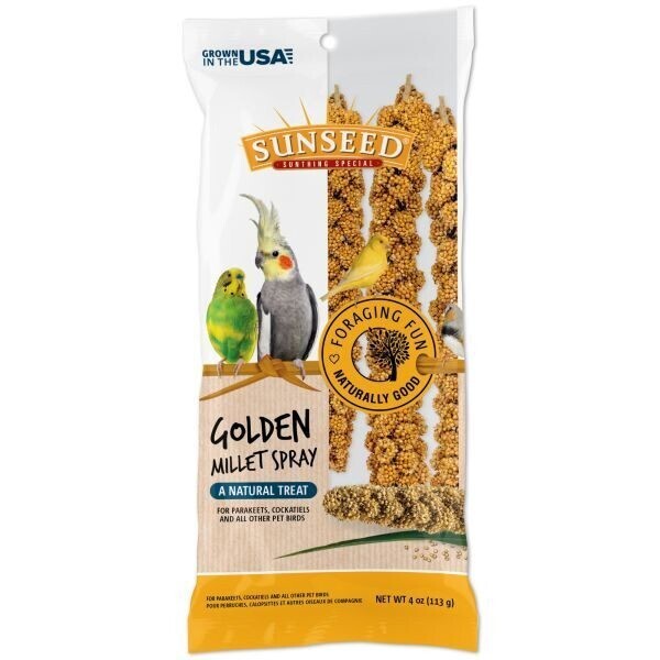 USA Grown Sunseed Golden Millet Spray Natural Treat for Parakeets Cockatiels 4oz