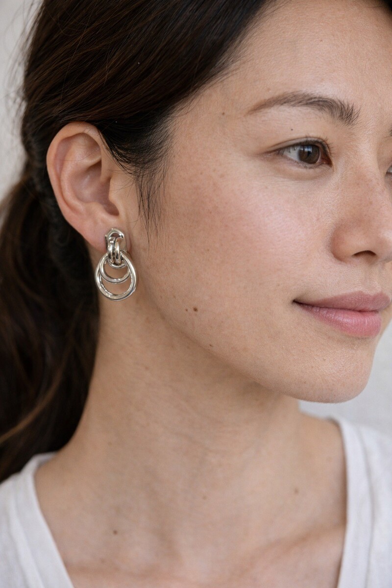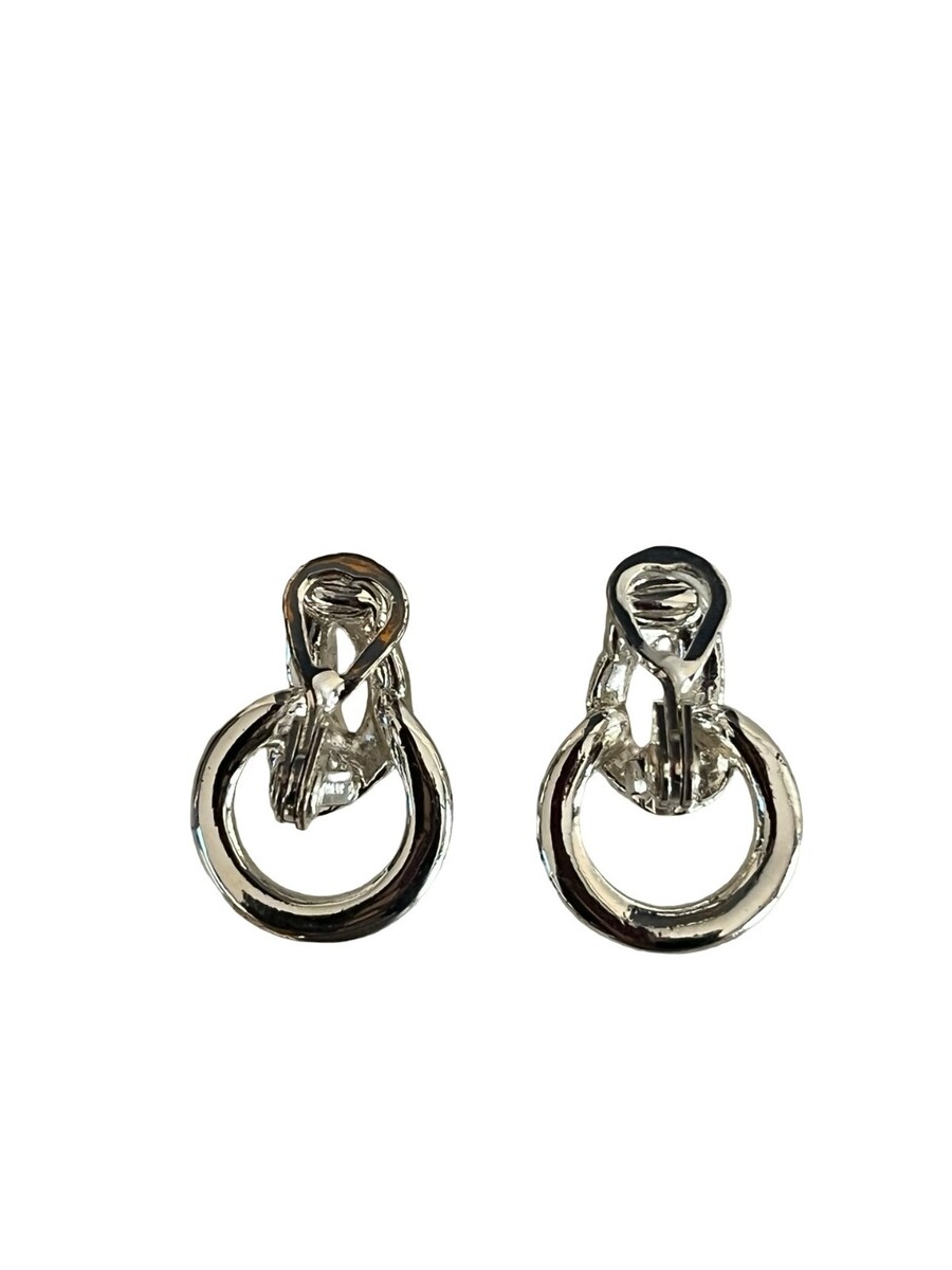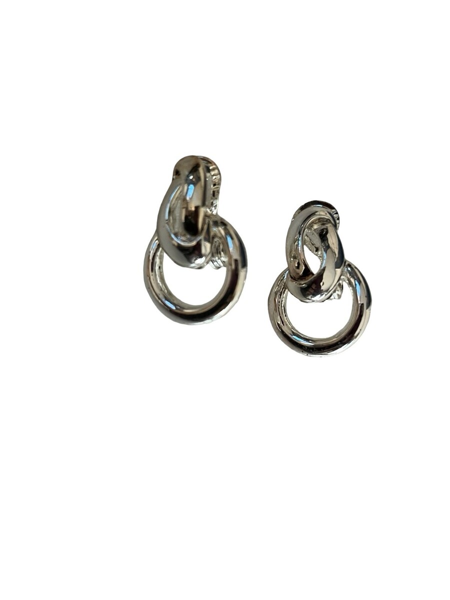 Sleek and modern with a vintage edge, these silver tone clip-on earrings feature a bold double link design with a polished finish. The interlocking loops create a clean, sculptural look that feels both minimalist and statement-making. Lightweight and easy to wear, they?re a great option for anyone who prefers non-pierced styles with a contemporary feel.