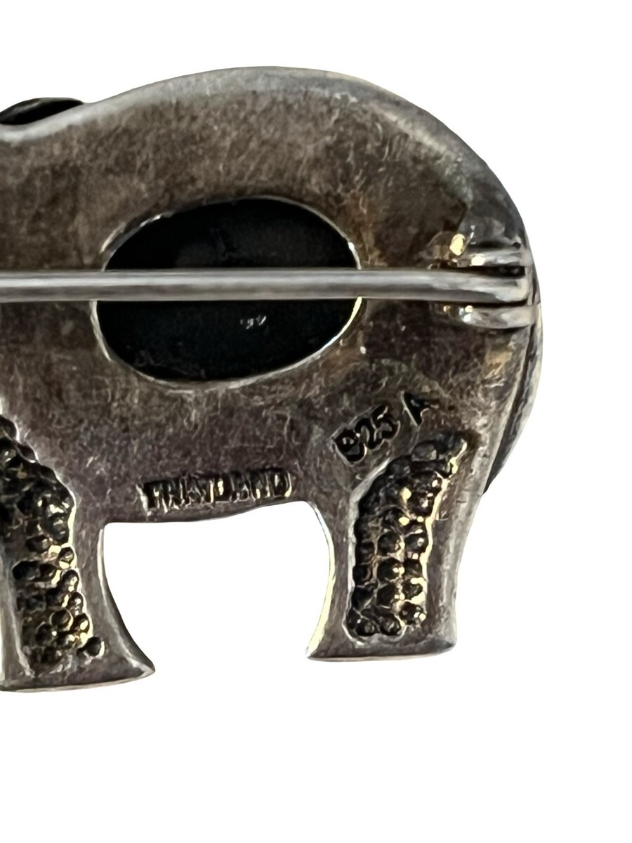 Vintage Mexico Sterling Silver Elephant Brooch Black Onyx Inlay