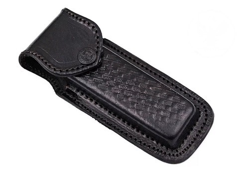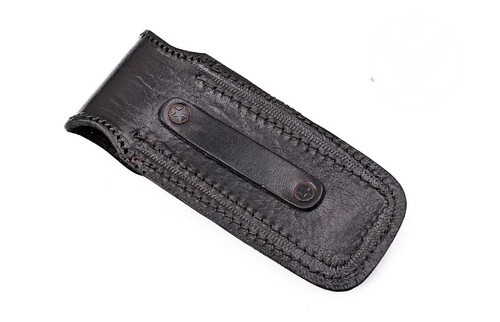 This vintage dark black sheath is the perfect addition to your buck 110 pocket folding knife collection. Handmade with high-quality leather material, this sheath features a retaining flap with snap blade security and a belt loop for convenient carrying. The ambidextrous dexterity design makes it suitable for both left- and right-handed individuals.