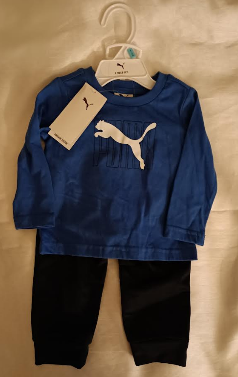 Puma Infant 0-3 Months Boys 2 Piece Set Royal Blue Longsleeve Shirt Black Pants. 60% Cotton 40% Polyester
