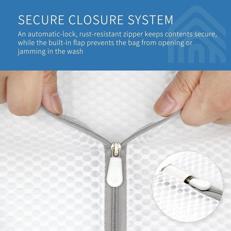 Our premium anti-rust zipper with auto lock and smart zipper protection will prevent the bag from opening during washing and drying cycle. You?ll have a quiet laundry experience