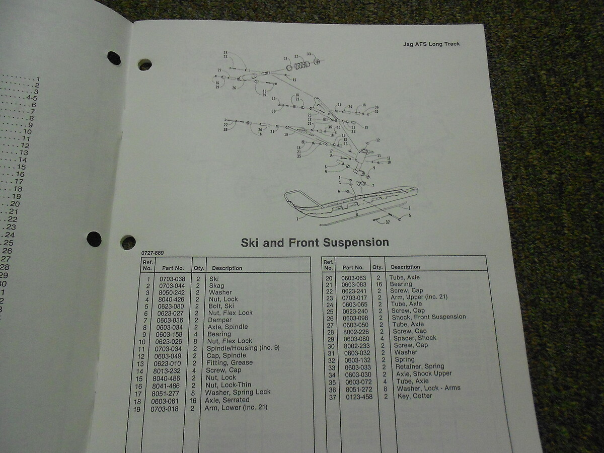 Catalogo Manuale Di Parti Illustrato OEM Arctic Cat Jag AFS Long Track 1991
