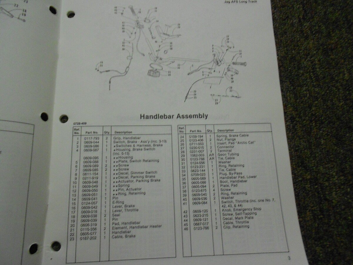 MANUALE DELLE PARTI ILLUSTRATE ARCTIC CAT JAG AFS LONG TRACK DEL 1991