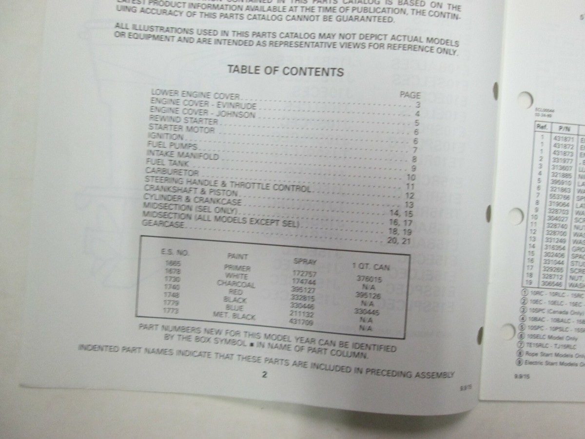 Catalogo Manuale Parti OMC Johnson Evinrude 9.9 15 Modelli 1990 432879 OEM ***