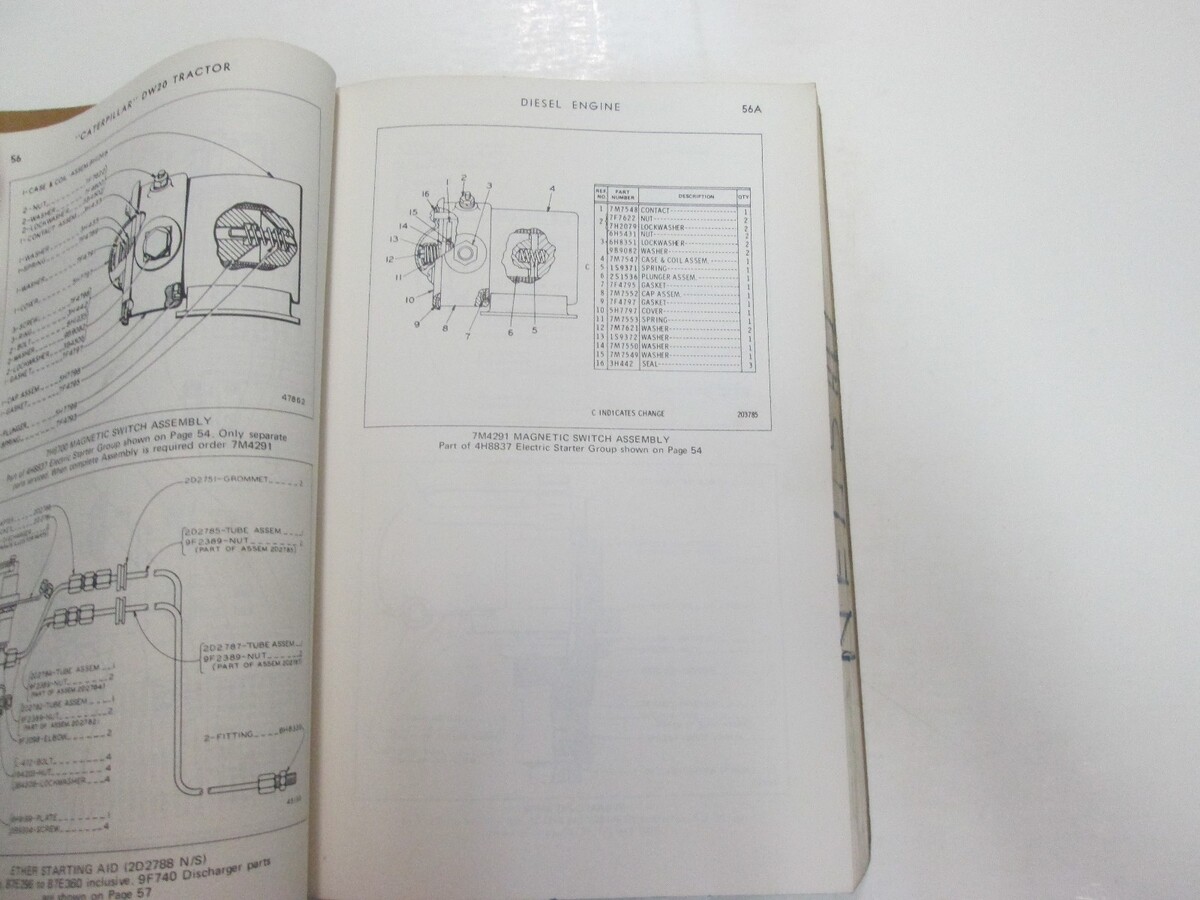 Caterpillar DW20 Traktor Direkt Elektrisch Start Teile Buch Manuell Worn Flecken