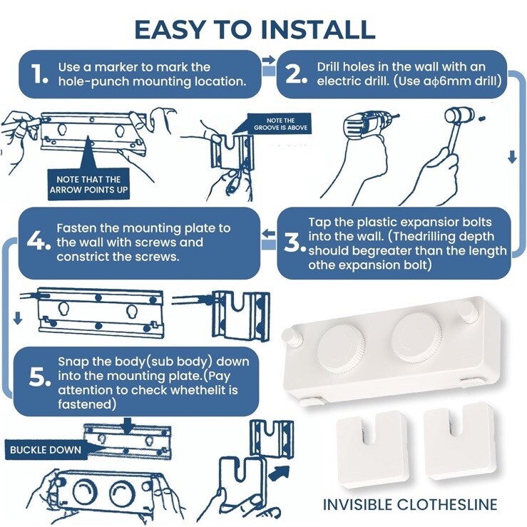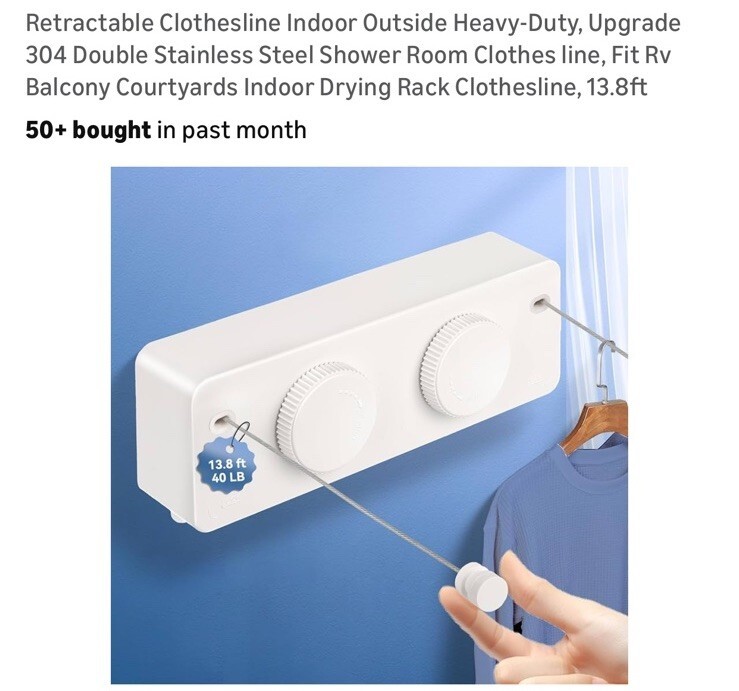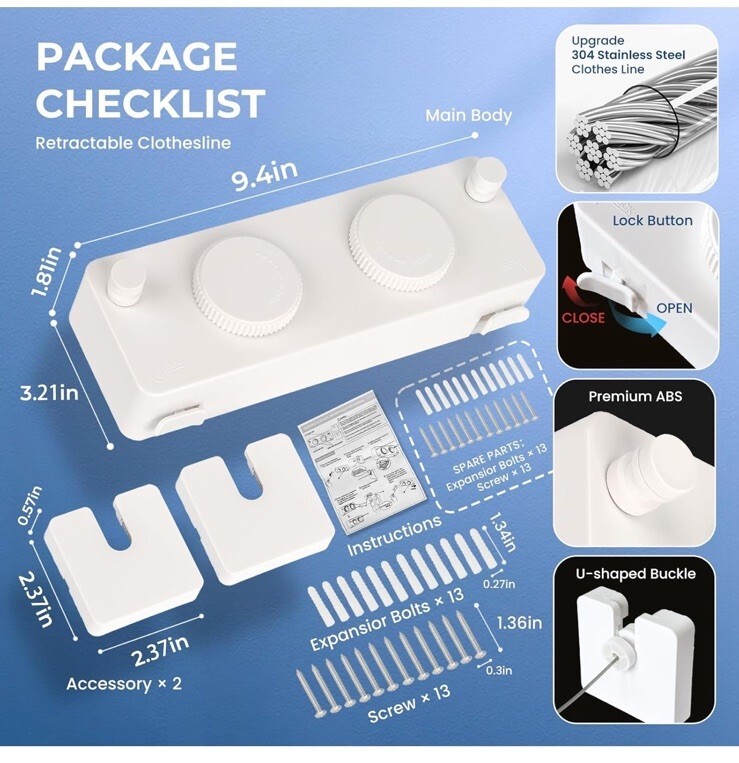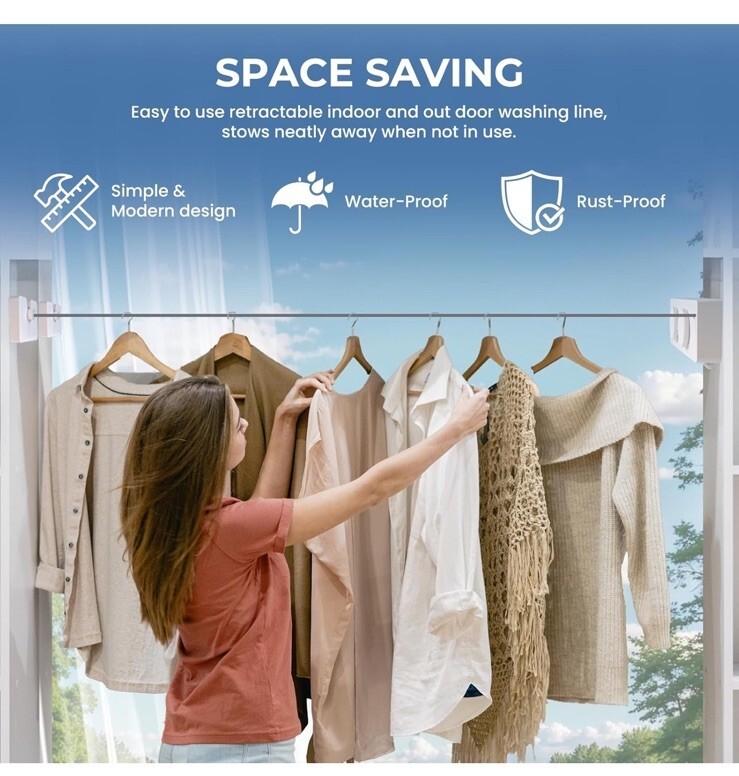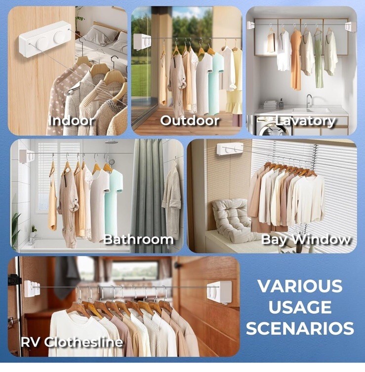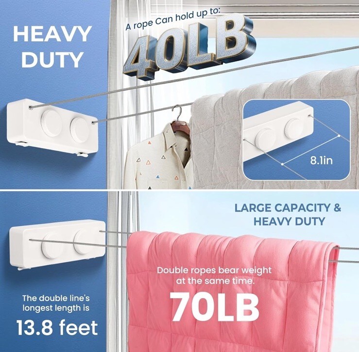 Retractable Clothesline Indoor Outside Heavy-Duty Upgrade 304 Double Stainless