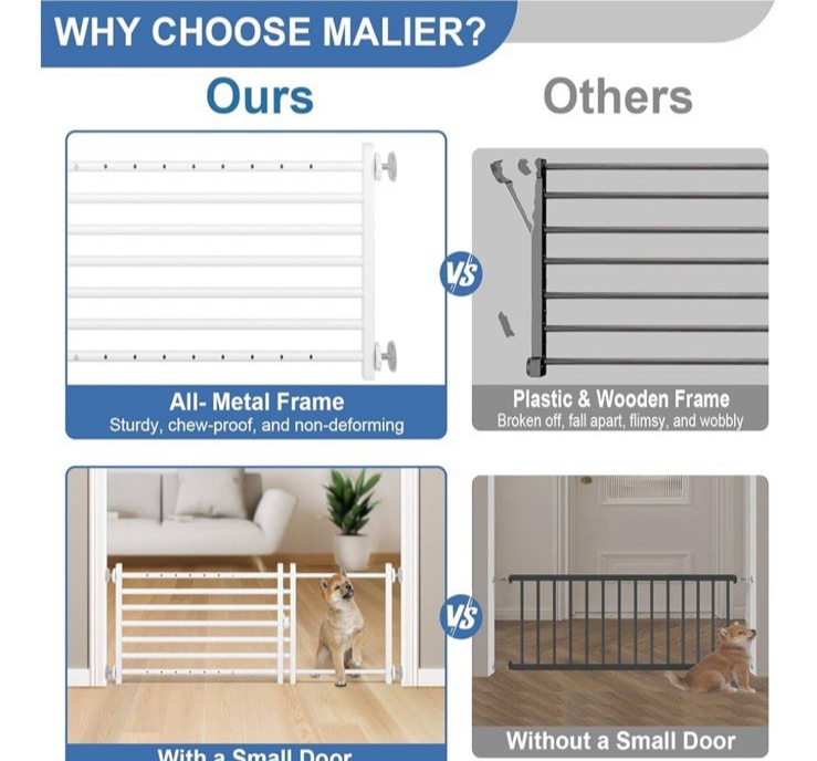 Dog Gate with a Small Door, Extra Wide All Metal Short Dog Gate Pet Gate