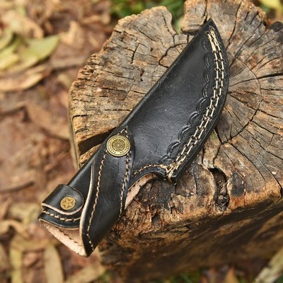 This beautiful sheath is made from pure leather. Sheath is hand made and hand sewn with double stitching to ensure long lasting life. The actual engraved design of the sheath may vary once received.