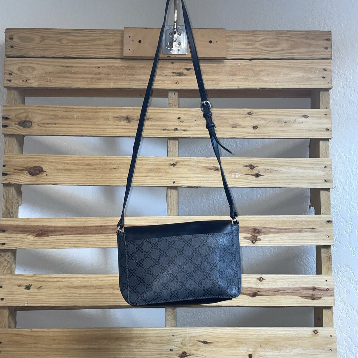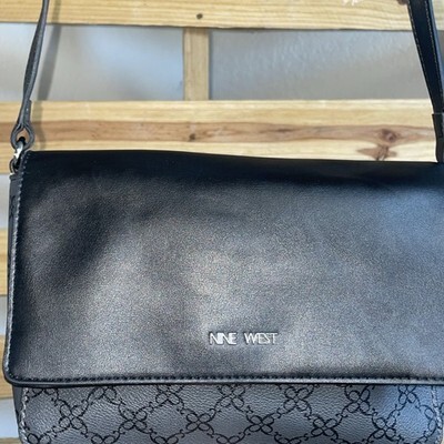 Nine West Women’s Black & Grey Faux Leather Crossbody Bag Adjustable Strap JD AP