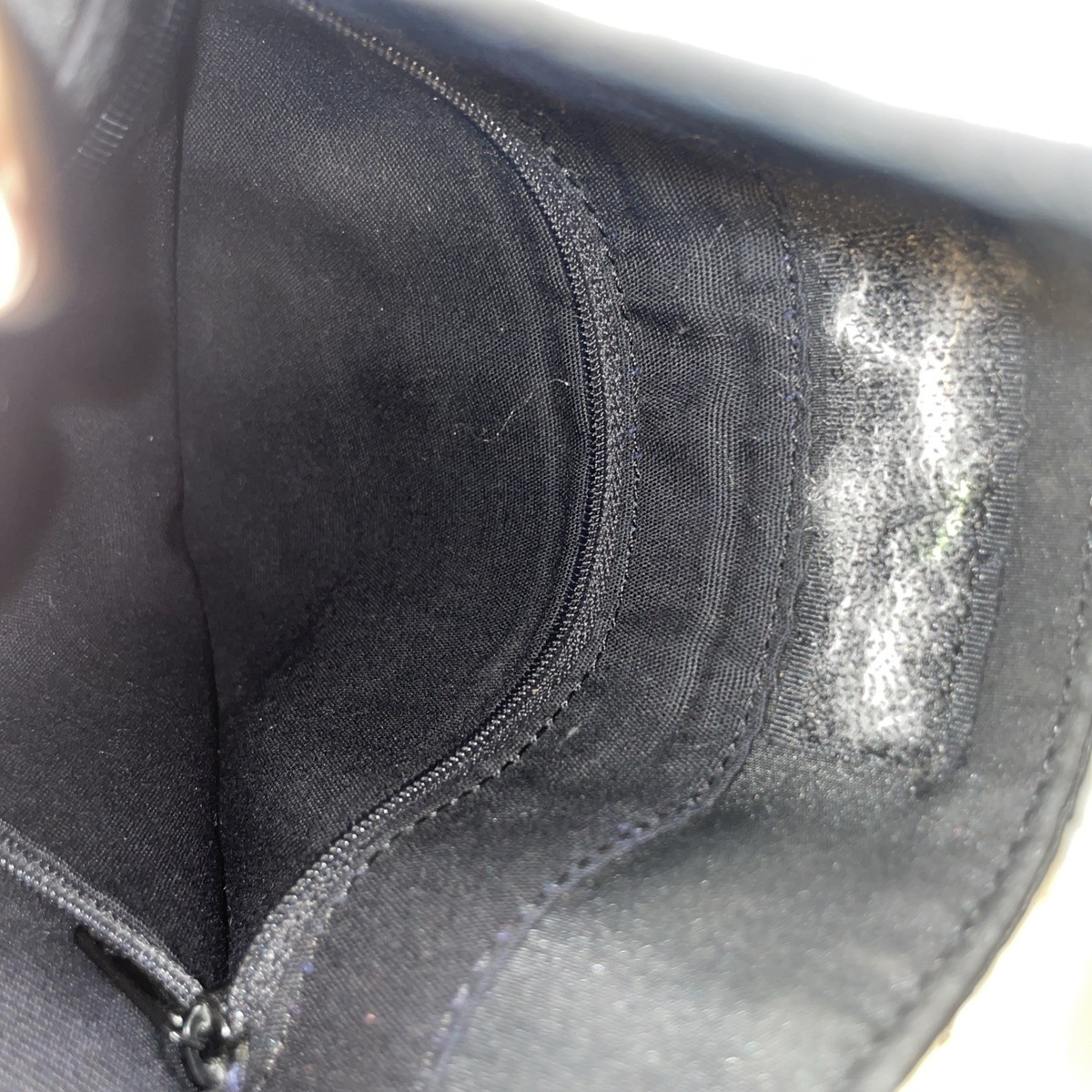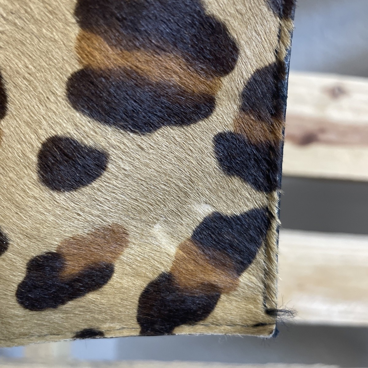 This handbag is missing some patches from the faux fur on the outside and has a couple white markings on the inside of the leather strap. Perfect leisure bag if you?re not trying to lug around a big purse.