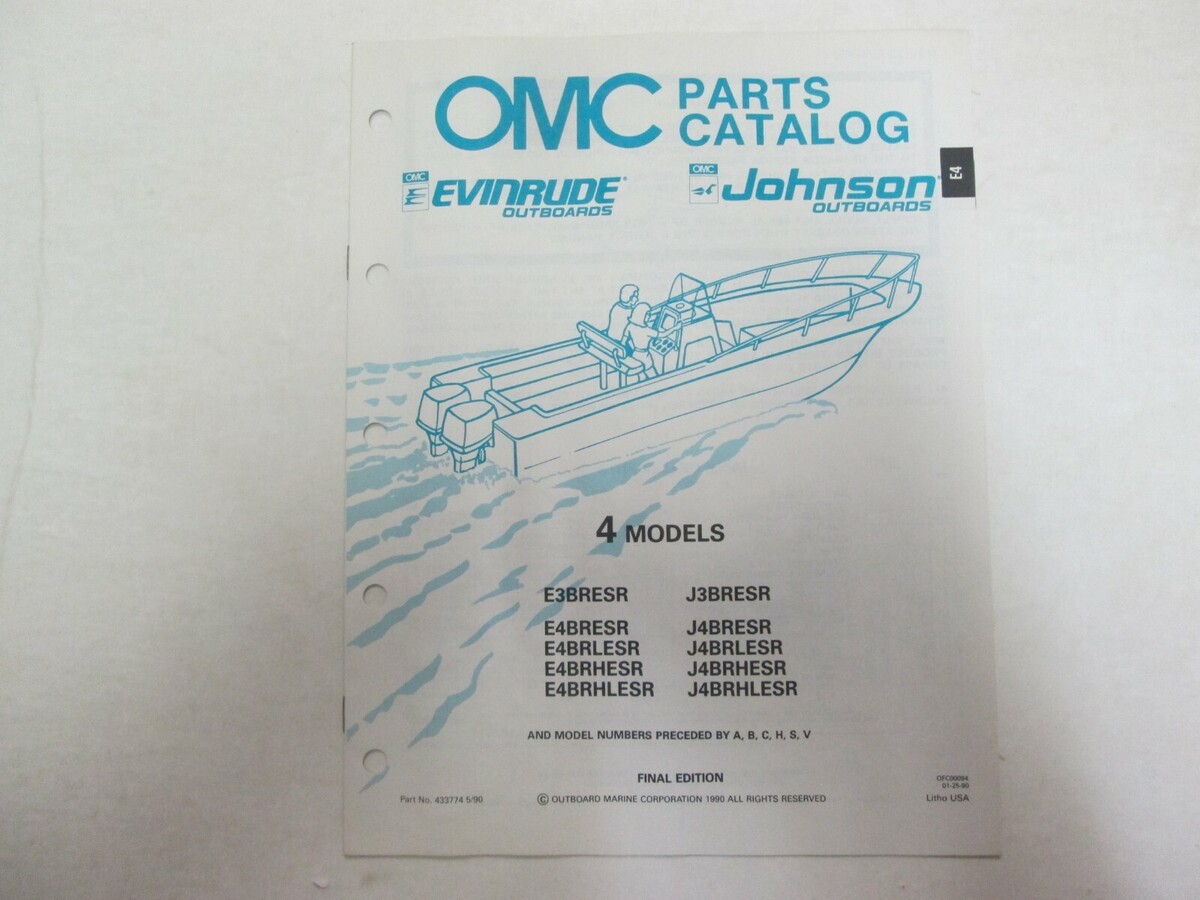 1991 Manuale del catalogo delle parti dei fuoribordo OMC Johnson Evinrude 4 modelli